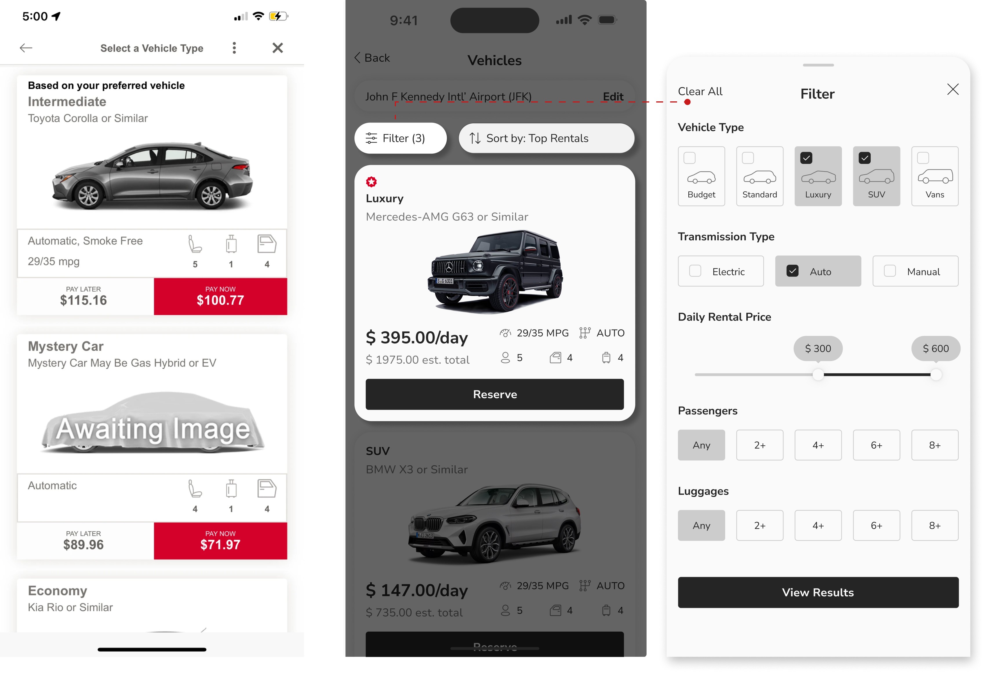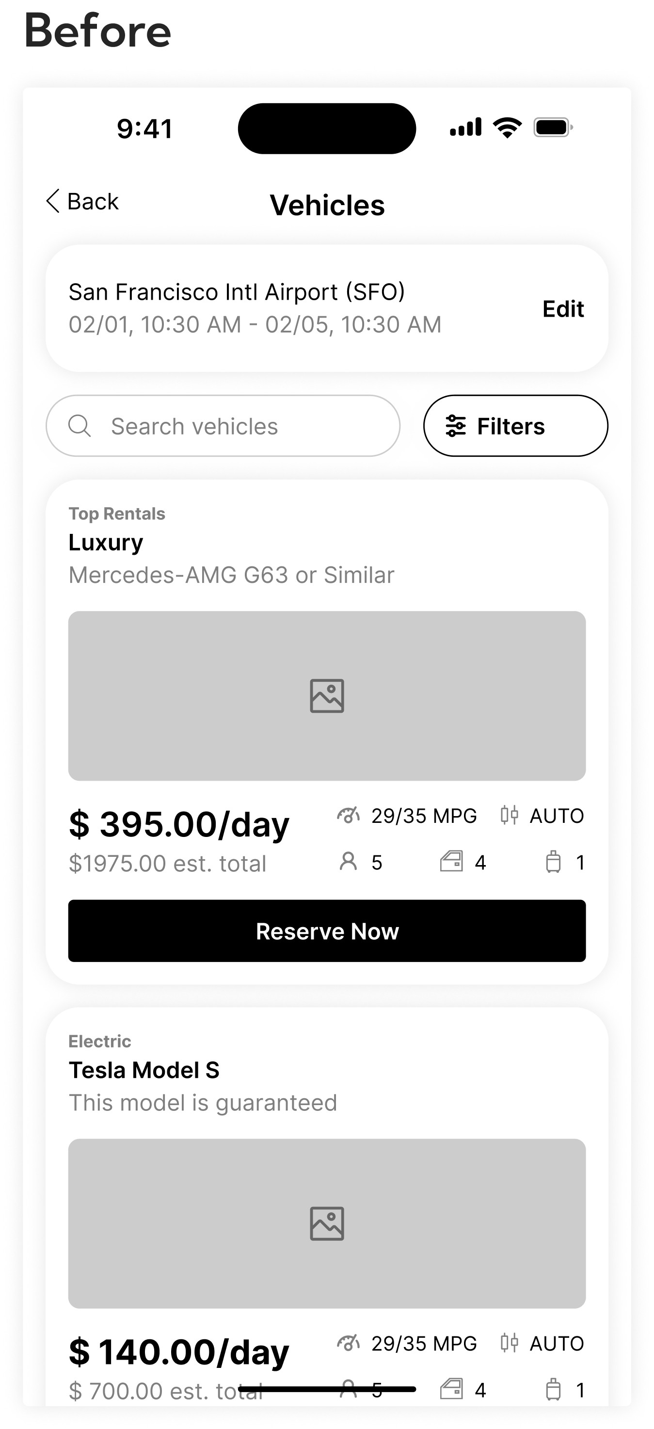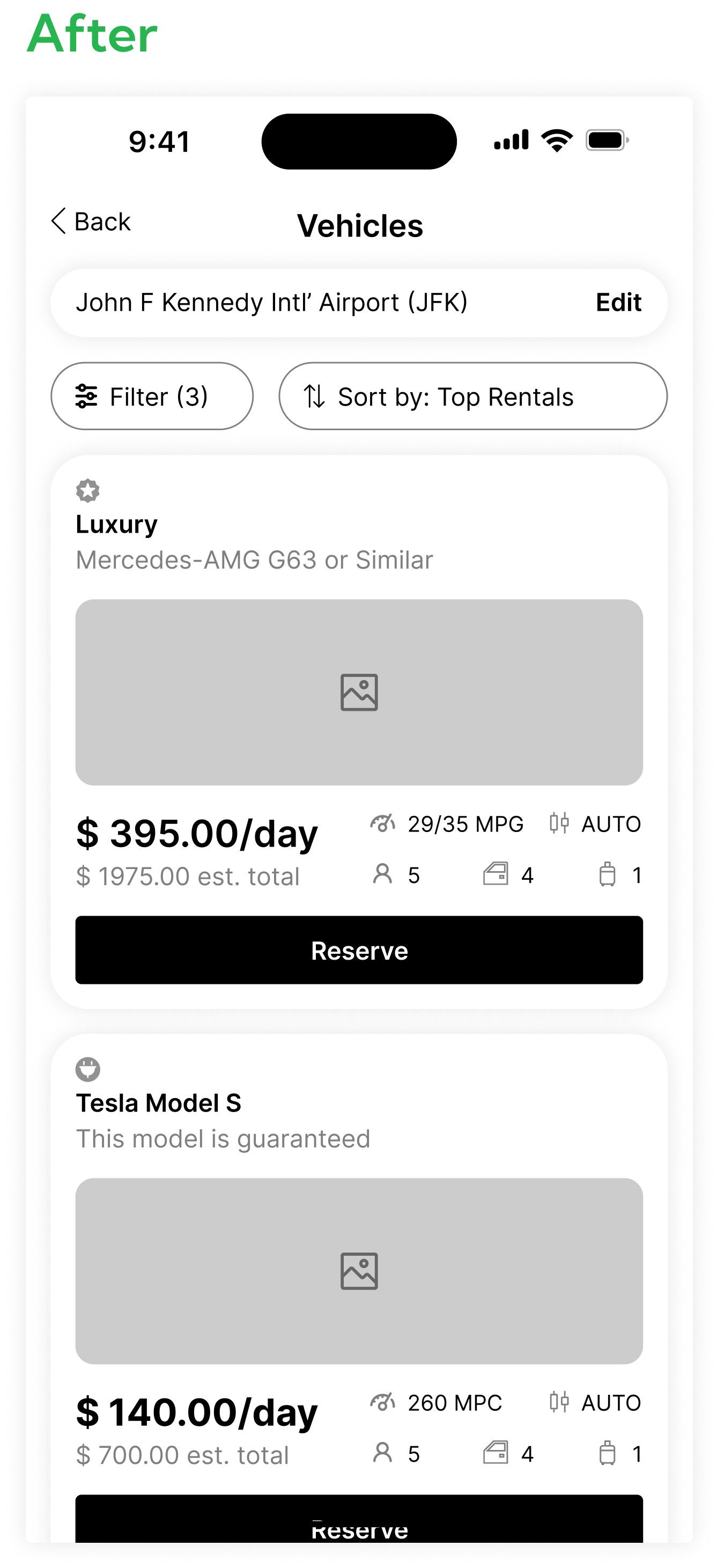 Intuitive layout with filters and sorting for a better browsing experience. Intuitive design with "Upcoming Rentals” for easier reservation management from the landing page.