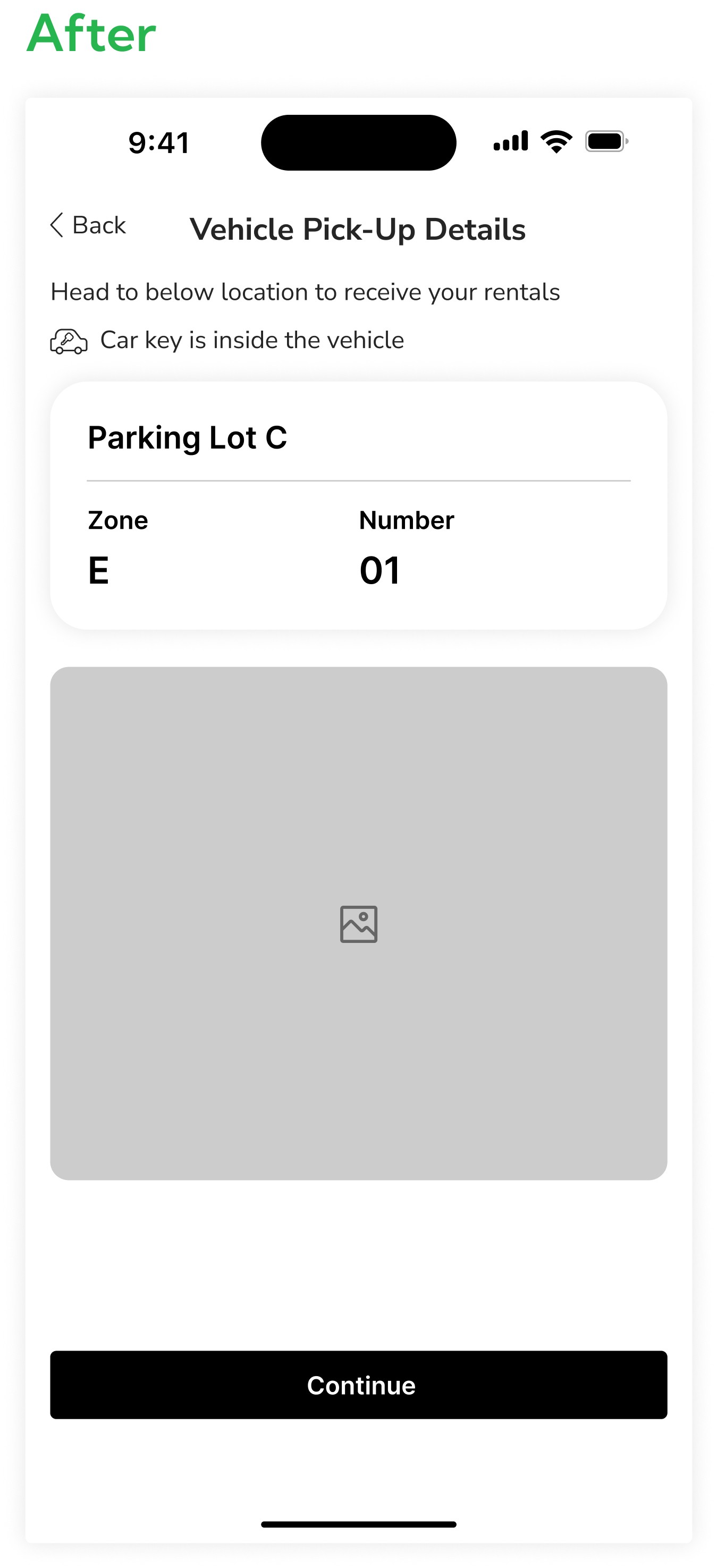 Users need clear instructions, guiding them to the rental vehicle parking spot and keys.