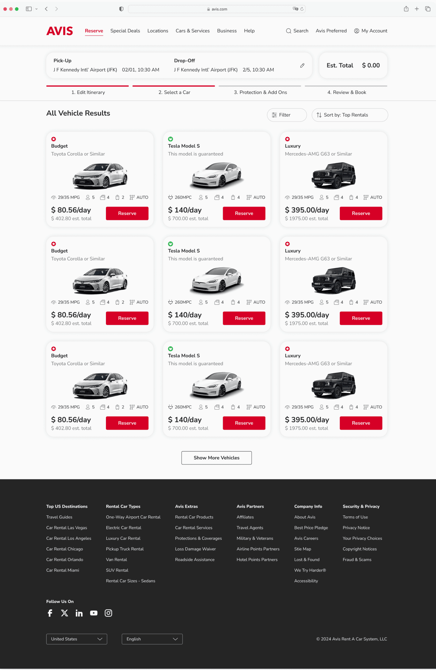 However, as one of the top rental companies, Avis is missing customizable pricing options, clear pick-up/drop-off instructions, and safety check information for a better rental experience.